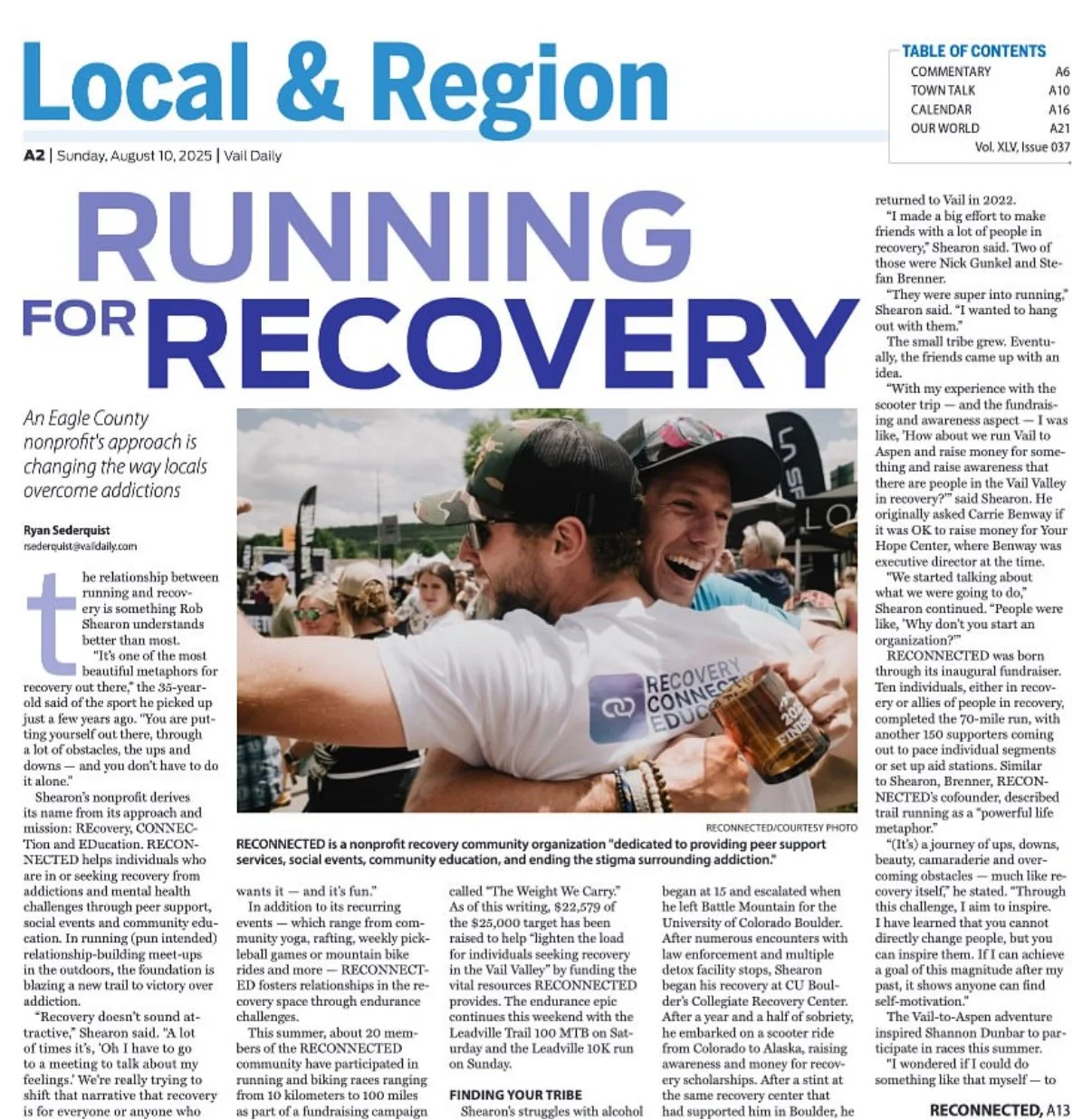 Dr. Steve is also a founding board member of "Reconnected", a non-profit that organizes active, community events for individuals and loved ones affected by mental health challenges. He recently organized a 100 kilometer trail run from Vail to Aspen.
